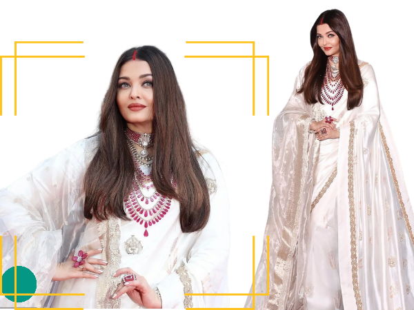 ऐश्वर्या के इस पारंपरिक लुक को और भी भव्य बनाया एक शानदार 500 कैरेट मोज़ाम्बिक रूबी और अनकट हीरों से जड़ा 18 कैरेट गोल्ड हार, जिसे खासतौर पर इस अवसर के लिए डिजाइन किया गया था। यह ज्वेलरी पीस न केवल एक फैशन एक्सेसरी थी, बल्कि यह उनकी पूरी उपस्थिति को ‘रॉयल एलीगेंस’ की परिभाषा बना रहा था। हार के साथ उनके मैचिंग झुमके और कंगन ने उनके लुक को कम्प्लीट किया।